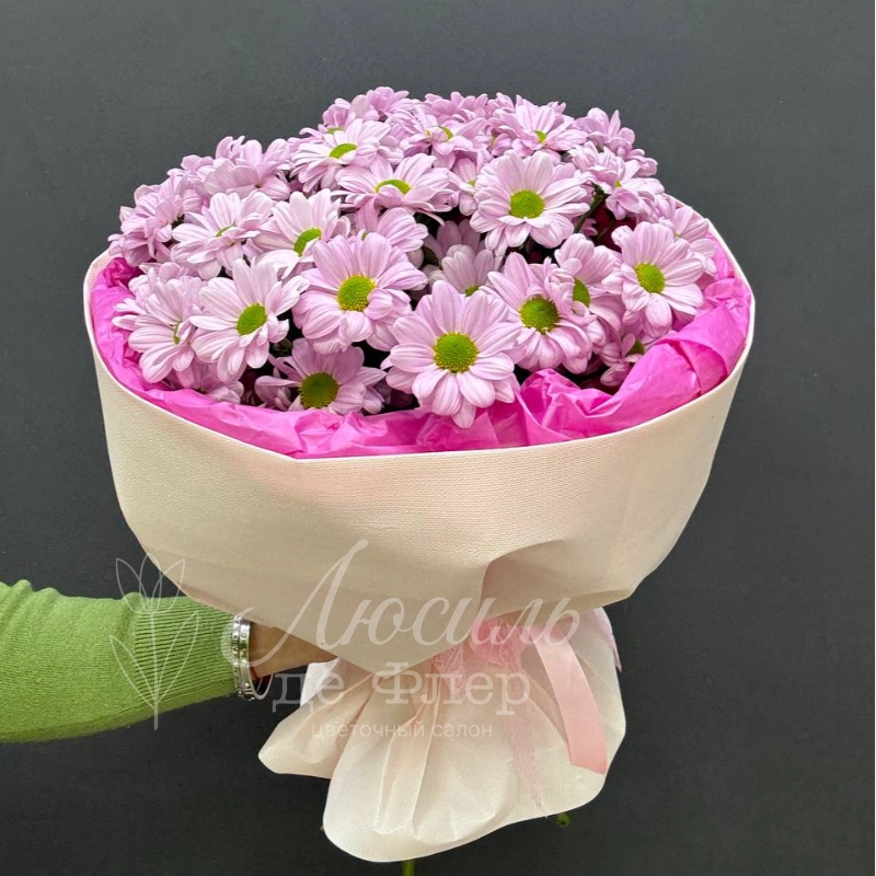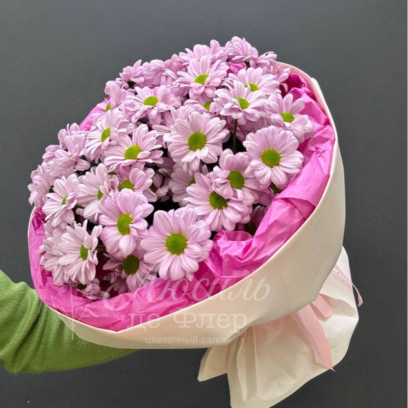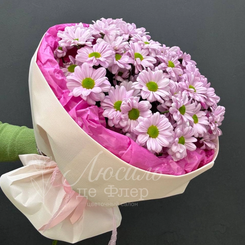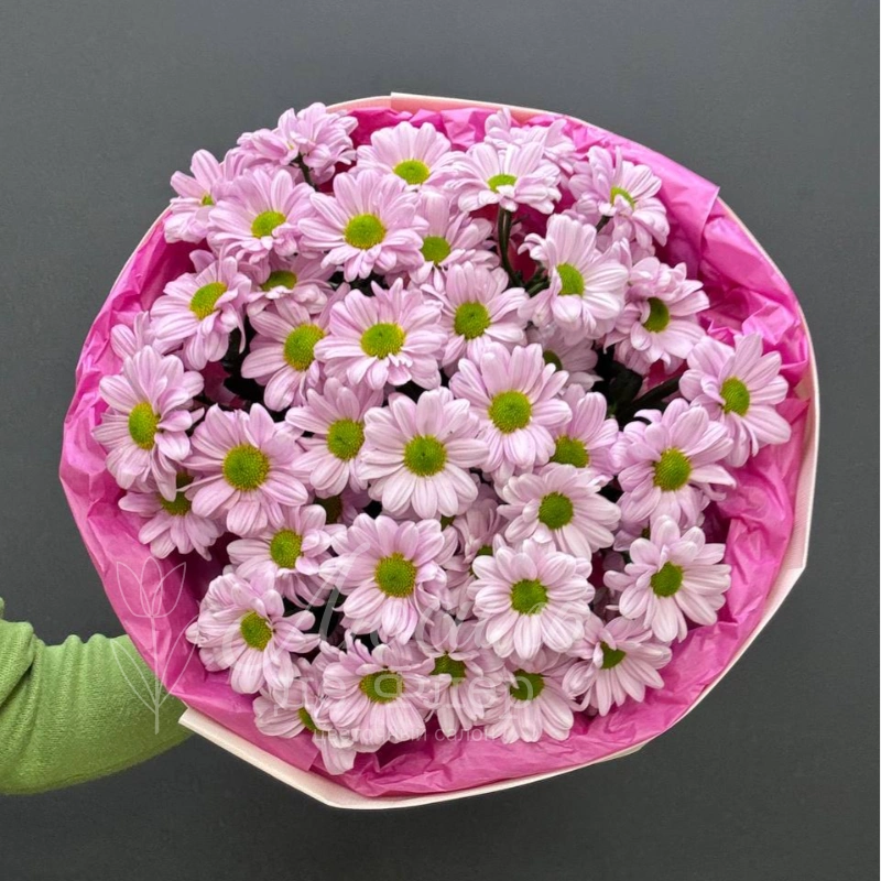 Нежный букет из ромашковых хризантем в пастельных тонах с яркими зелеными серединками создает ощущение свежести и легкости. Необычная упаковка добавляет ему элегантности и изящества. Этот букет точно передаст ваши чувства и станет прекрасным подарком для родных и близких.