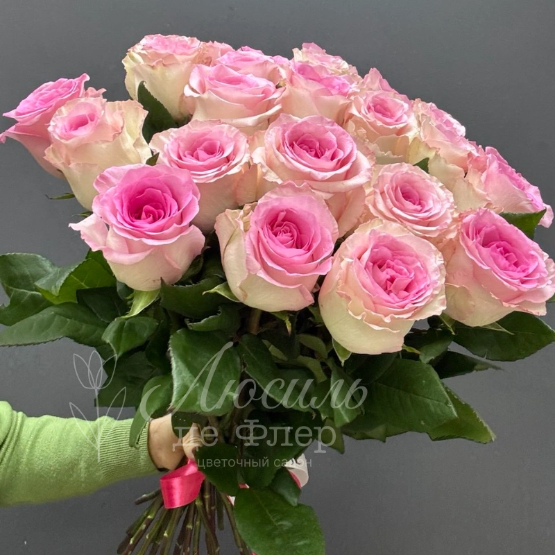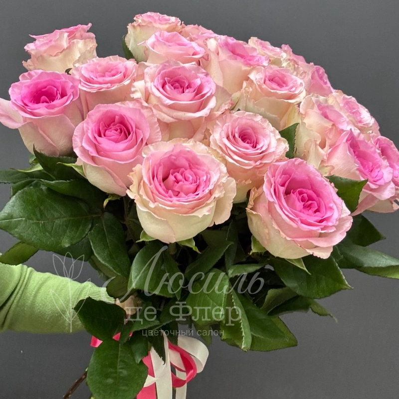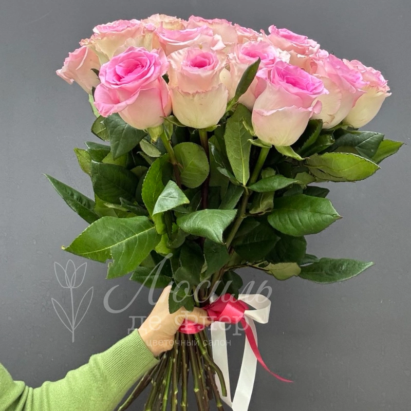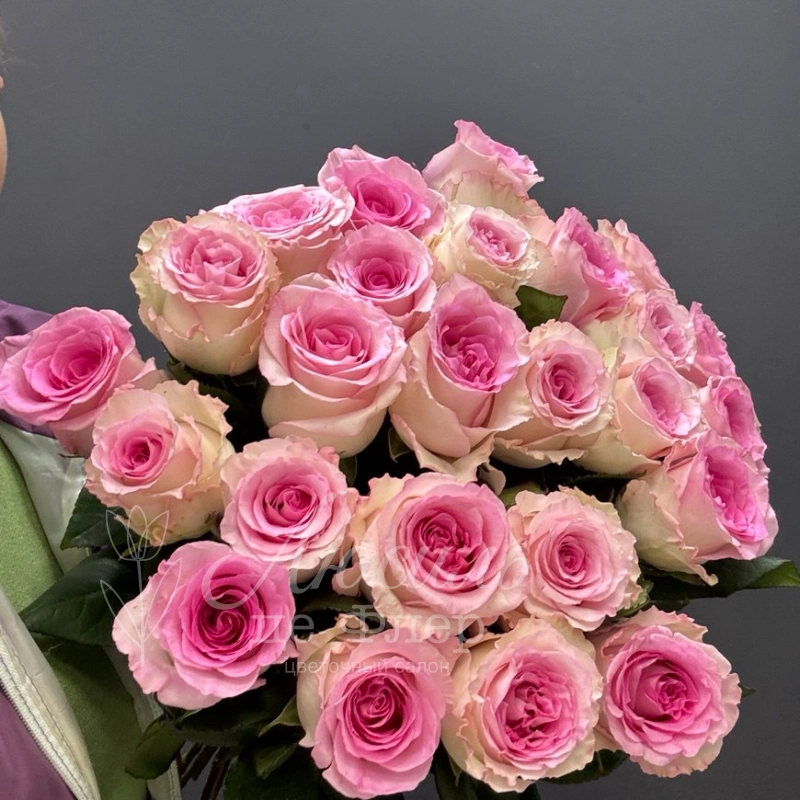 Монобукет из 25 нежно розовых роз - это роскошный подарок, который точно передаст самые тёплые чувства. Нежные розовые оттенки букета создают атмосферу уюта и ласки, а классическая форма цветов придаёт композиции элегантность.